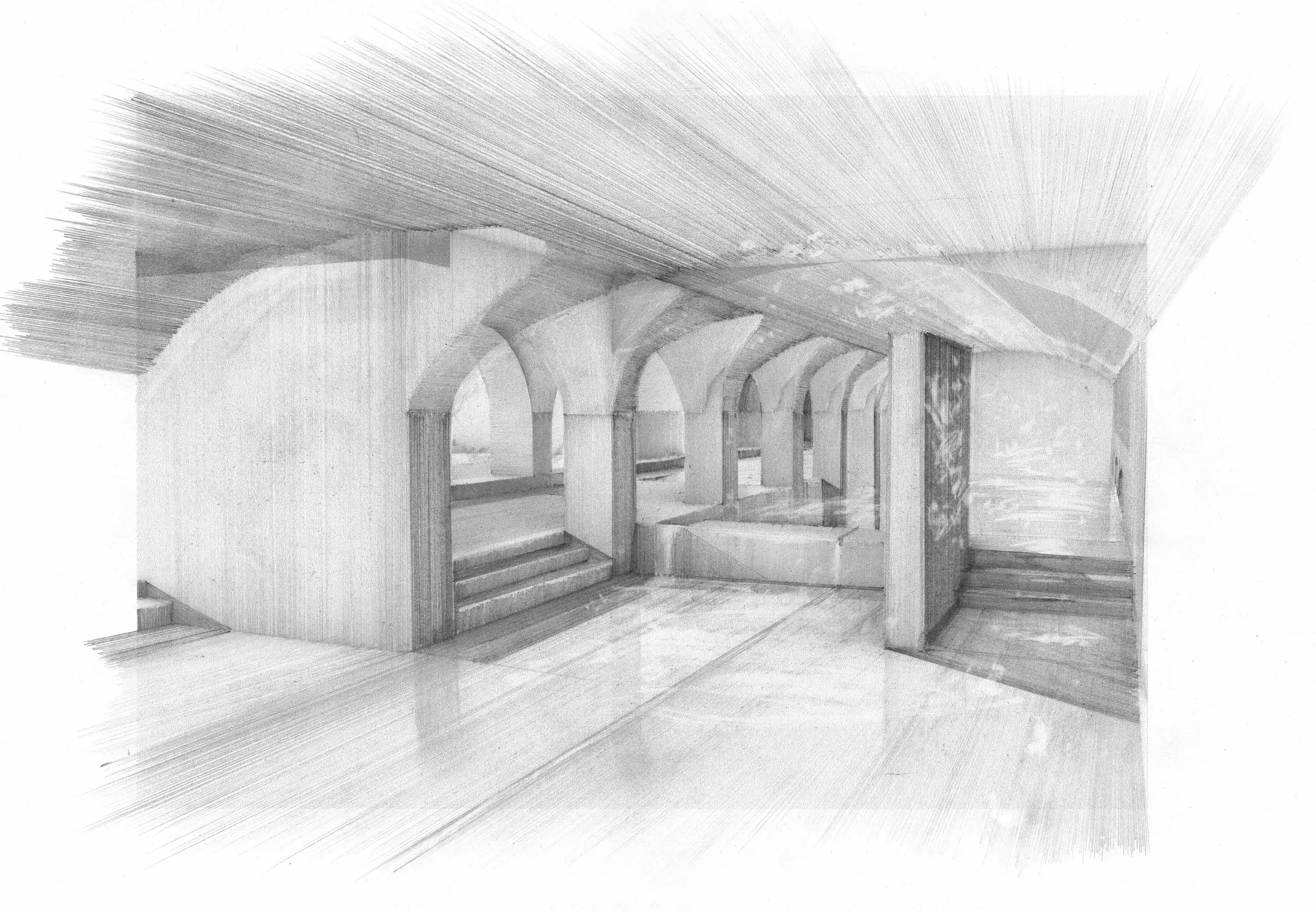 Clem’s interest in situationism informed our thinking about experience and encounter - how architecture can destabilise expectation, provoke curiosity and encourage imaginative occupation. His drawings became tools for testing atmospheres and spatial tensions, allowing the design to operate as a kind of architectural fiction: grounded in heritage yet open to fantasy.